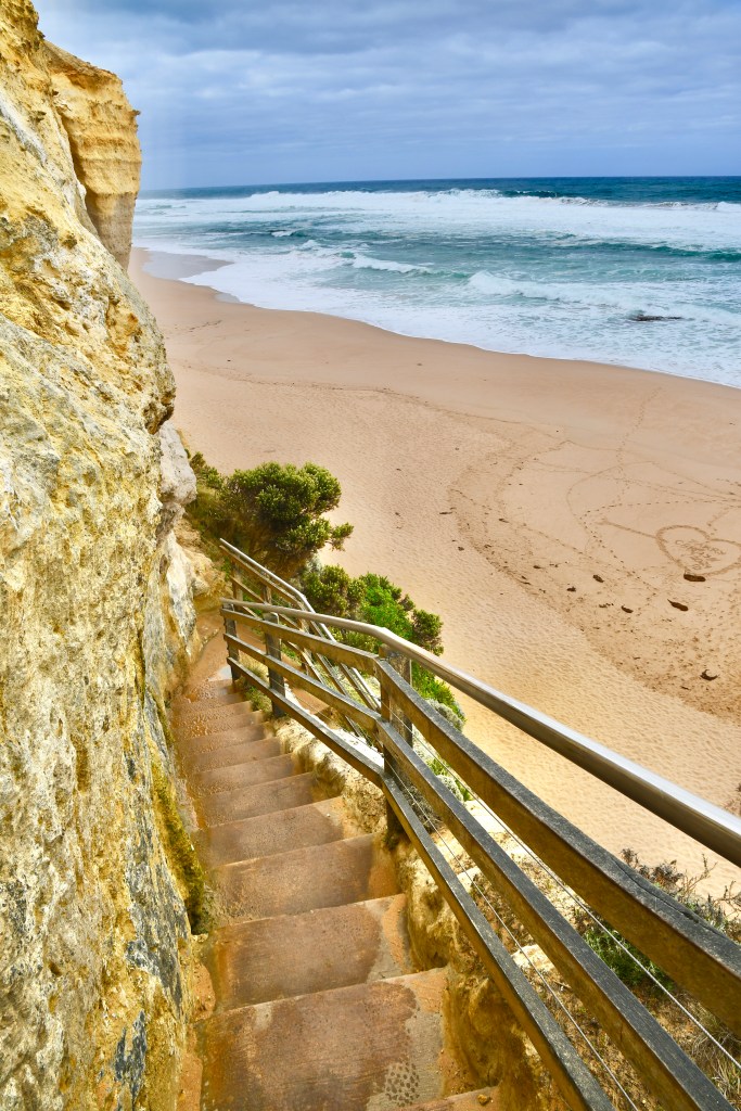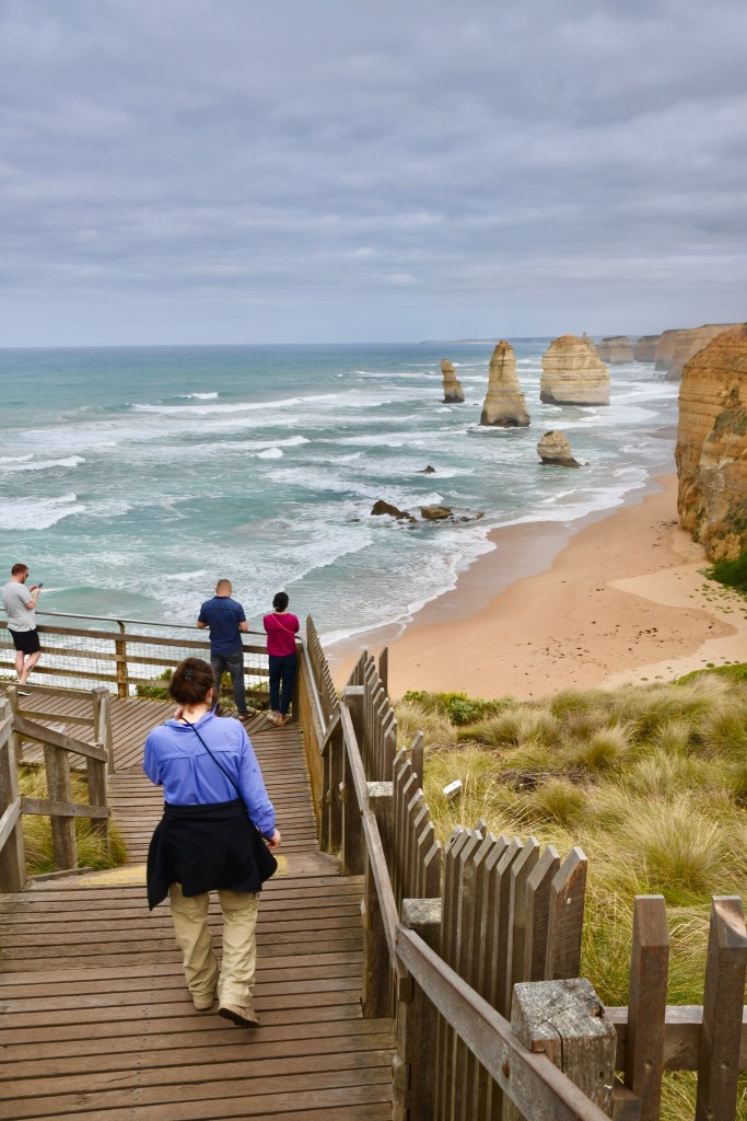 We started at the Twelve Apostles, which has a car park and visitor center. From the same car park we walked a trail to the Gibson Steps, the only access to the beach.