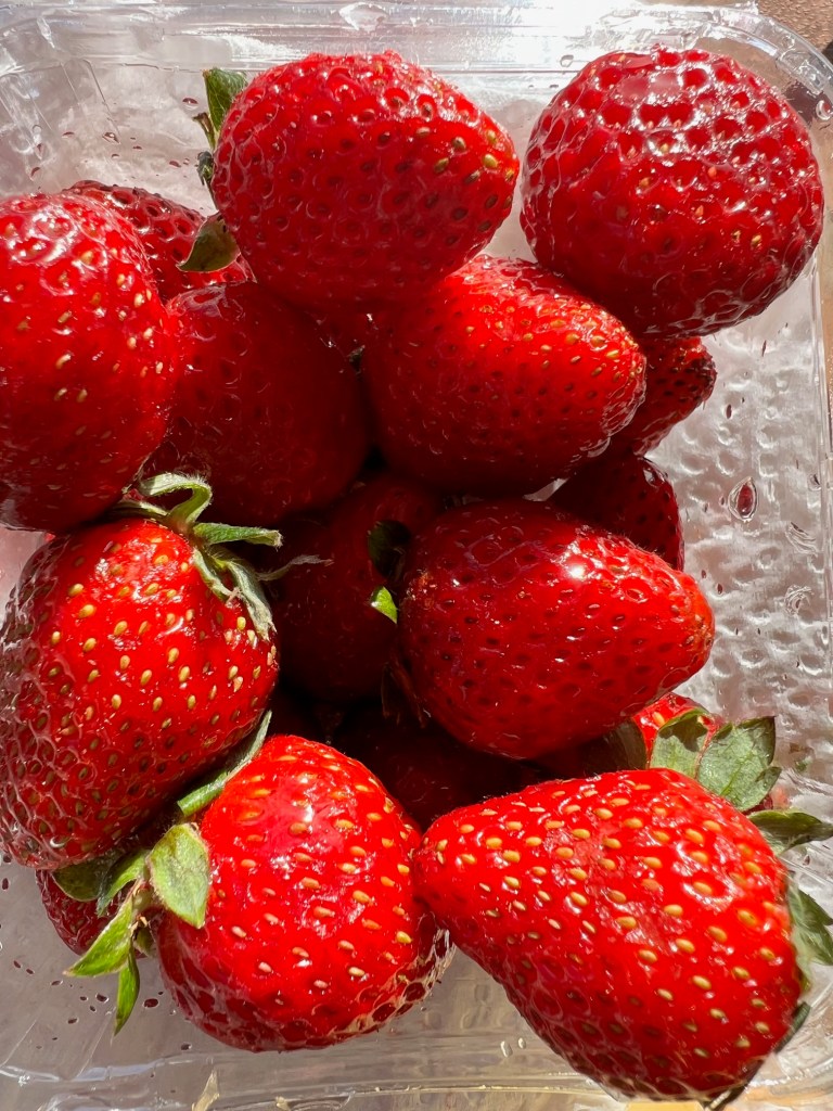 The strawberries were delicious. They tasted just like Oregon hoods, small and sweet.