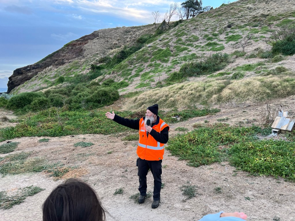 The park rangers gave a talk and advised of the strict no photography policy after sunset. The penguins come ashore in “rafts” (large groups) for safety, then walk up the beach to find their burrows. They are the smallest Penguin in the world, with blue feathers on top and white on the bottom.