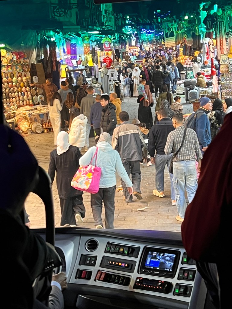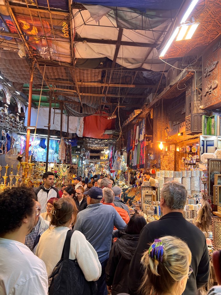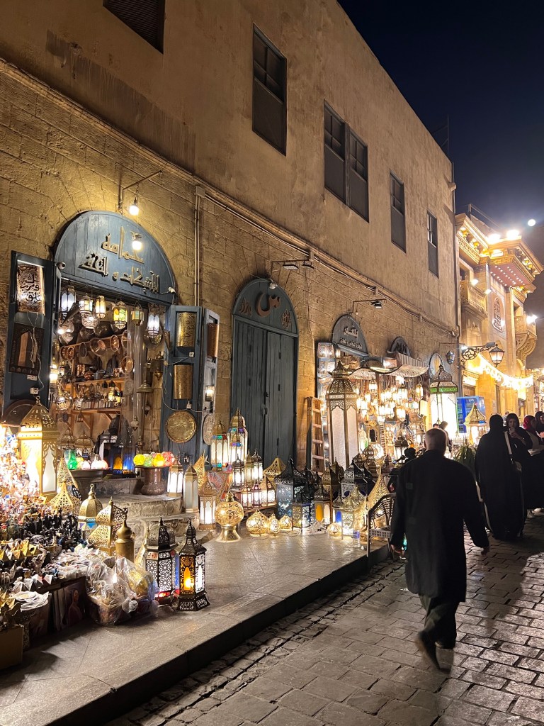 Back at our hotel at 4 pm, we had a quick nap, still adjusting to the new time zone, and then set out for an evening tour of the Khan el-Khalili market and dinner. We are here during Ramadan, so things really ramp up after sunset.