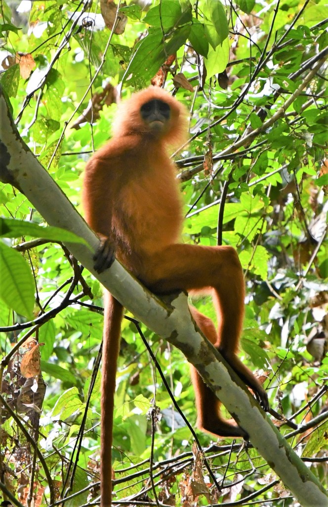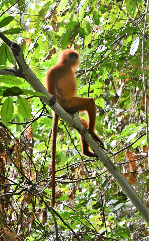 That afternoon, my sister and I joined the guide for a walk in search of the Red Leaf Langur. We set out to see that specific monkey, and darned if we didn’t. We found three, playing in the trees and watched them for a while. If was just the two of us and the guides, so we were able to be quietly watch them for as long as we wished.