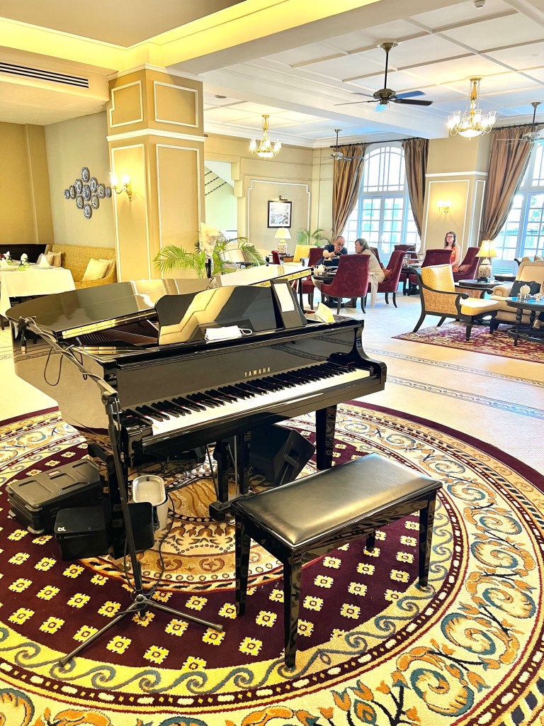 By 3 pm we had cooled sufficiently and were ready to try the hotel’s afternoon tea. It runs from 3 to 6 pm and is quite popular. They had a pianist at the piano.