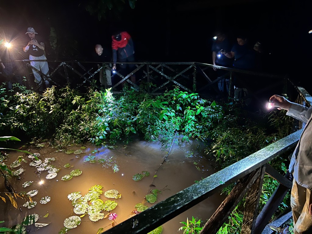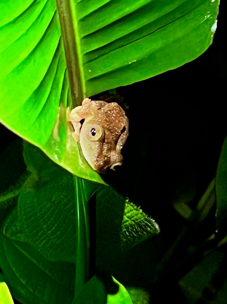 Our first evening at the lodge we walked the short distance to a frog pond looking for frogs. We found some. Maybe not as exciting as an orangutan, but it was fun.