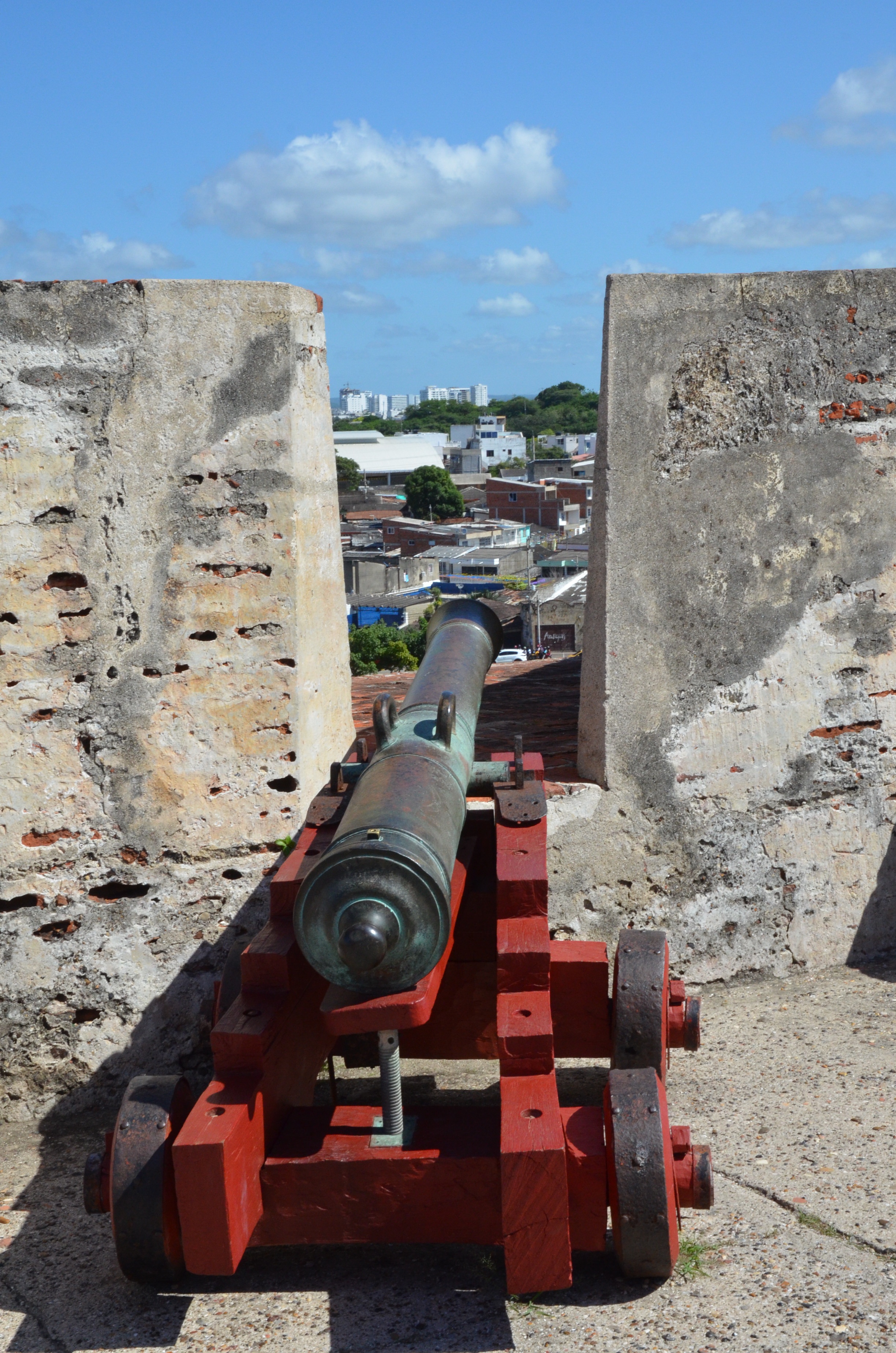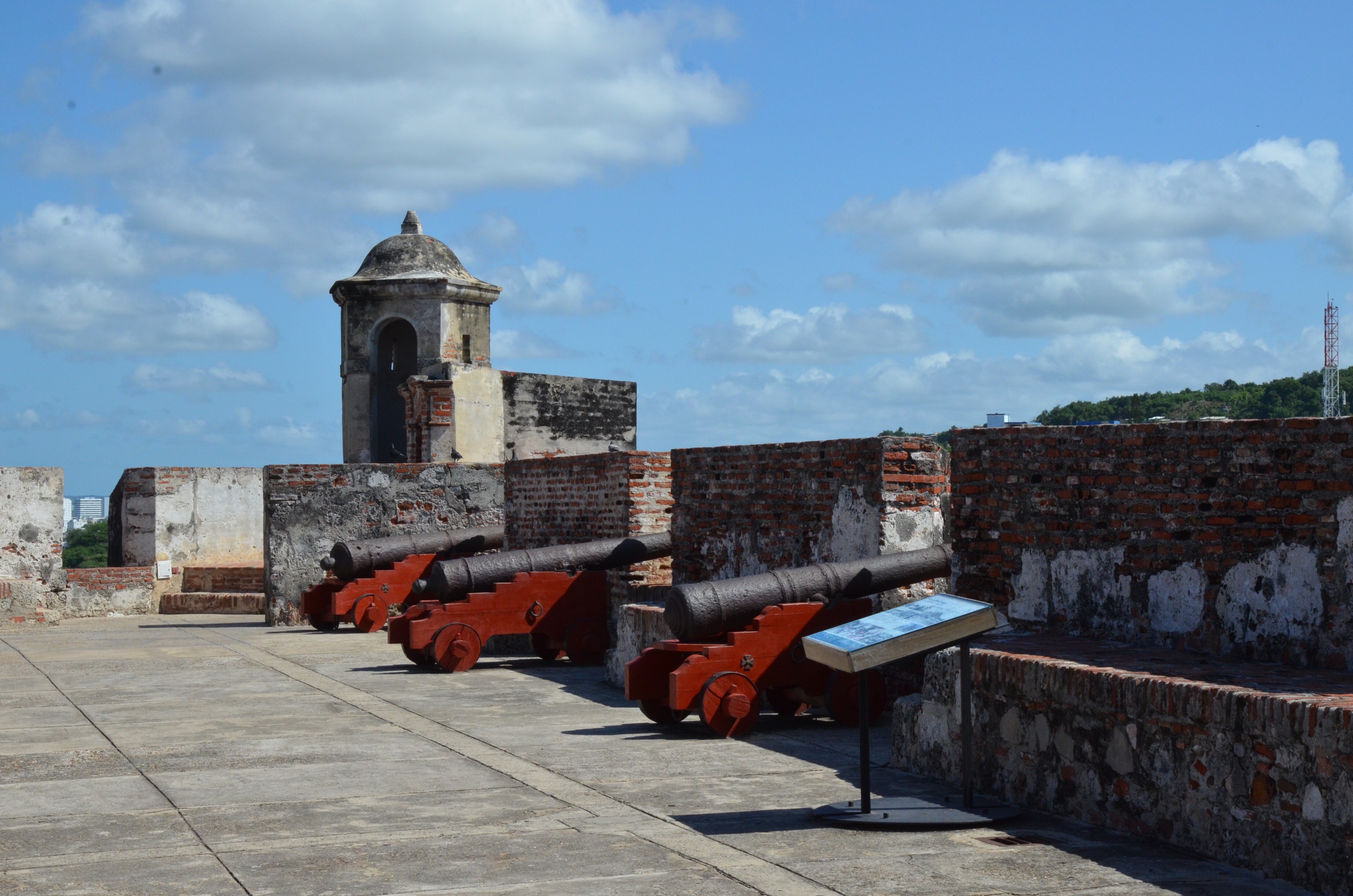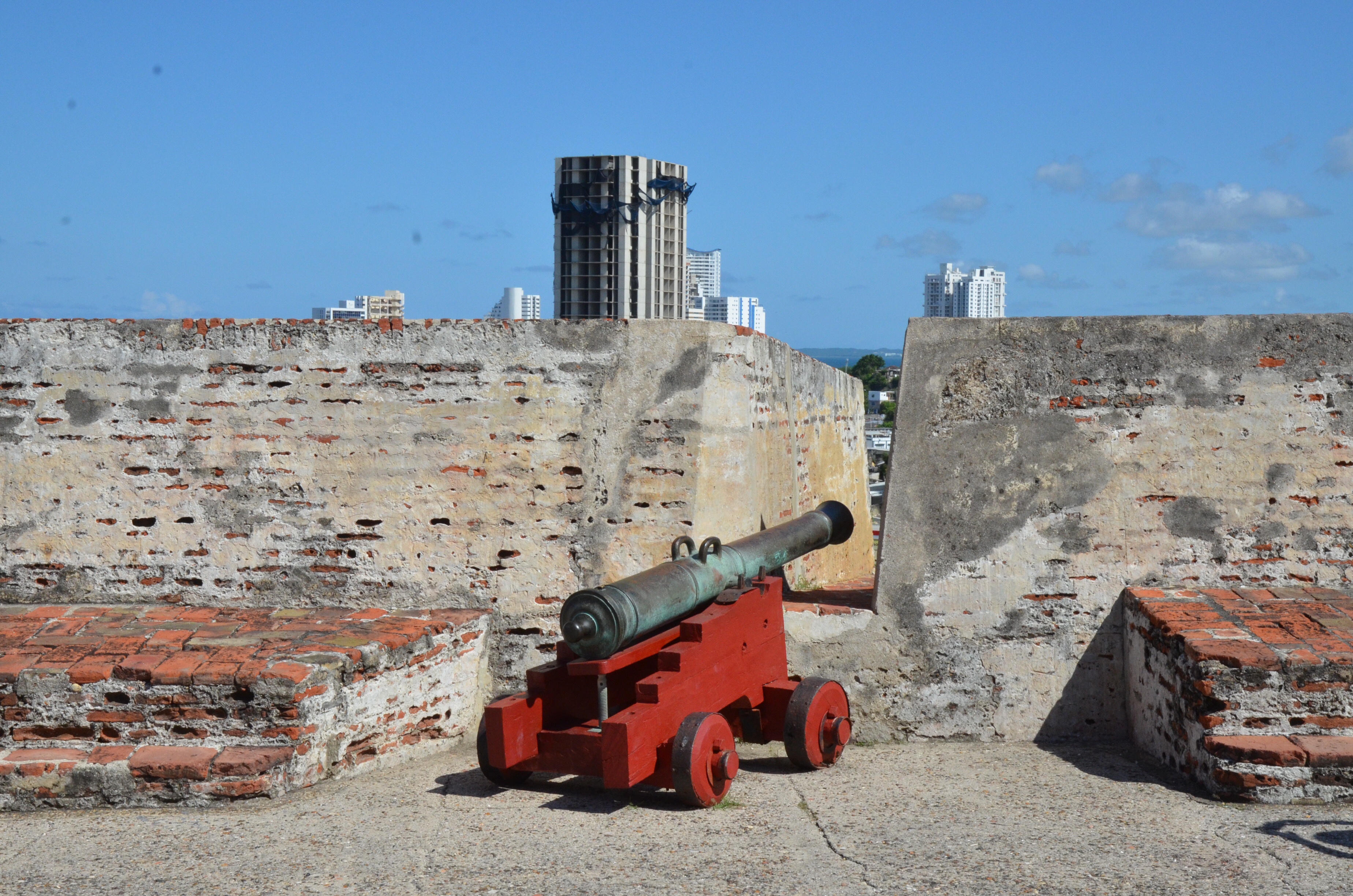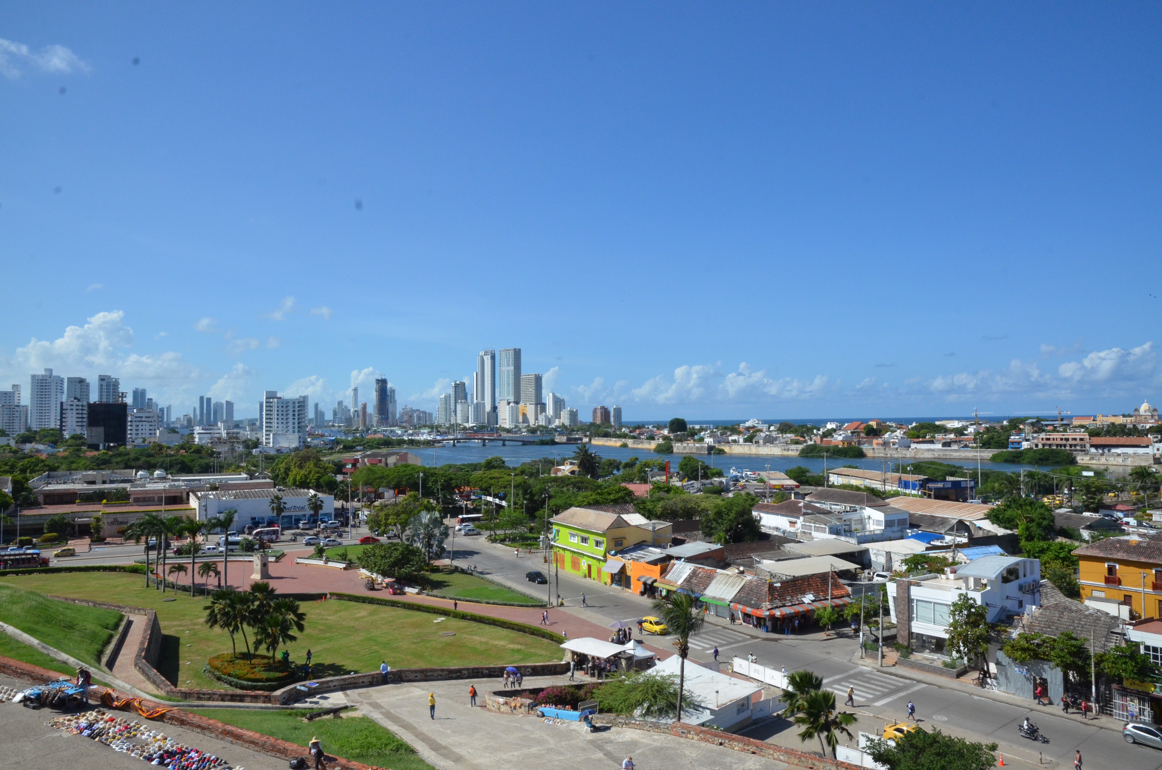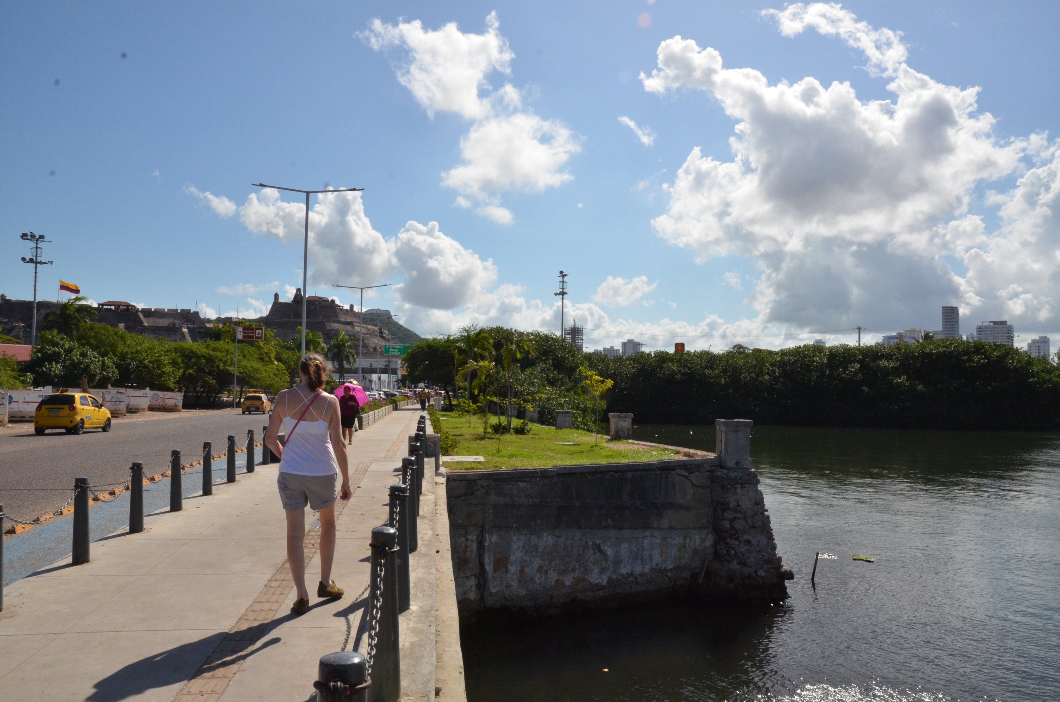 Through the main gate, past Getsemani, and over a bridge to the fort. It was only a bit over a mile but it was 85 F and very humid, so it felt further.