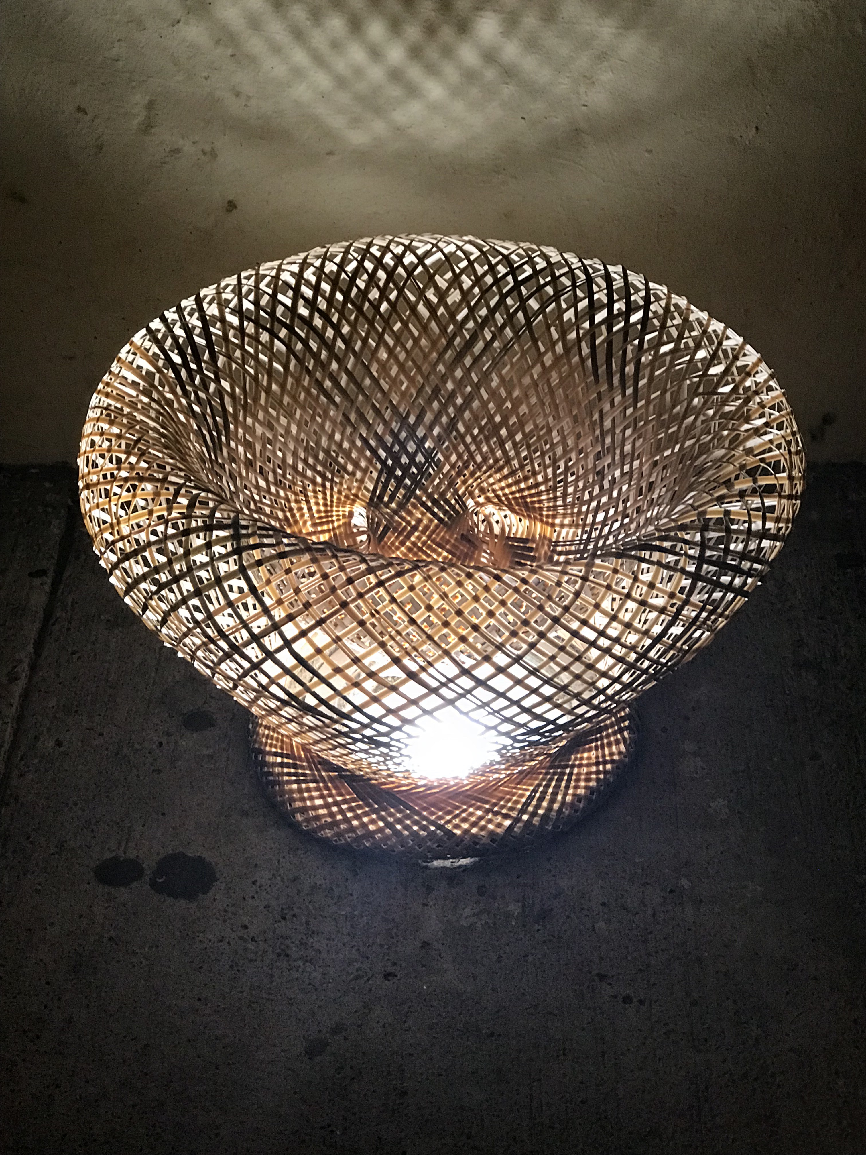 A wicker basket becomes a beautiful light fixture.
