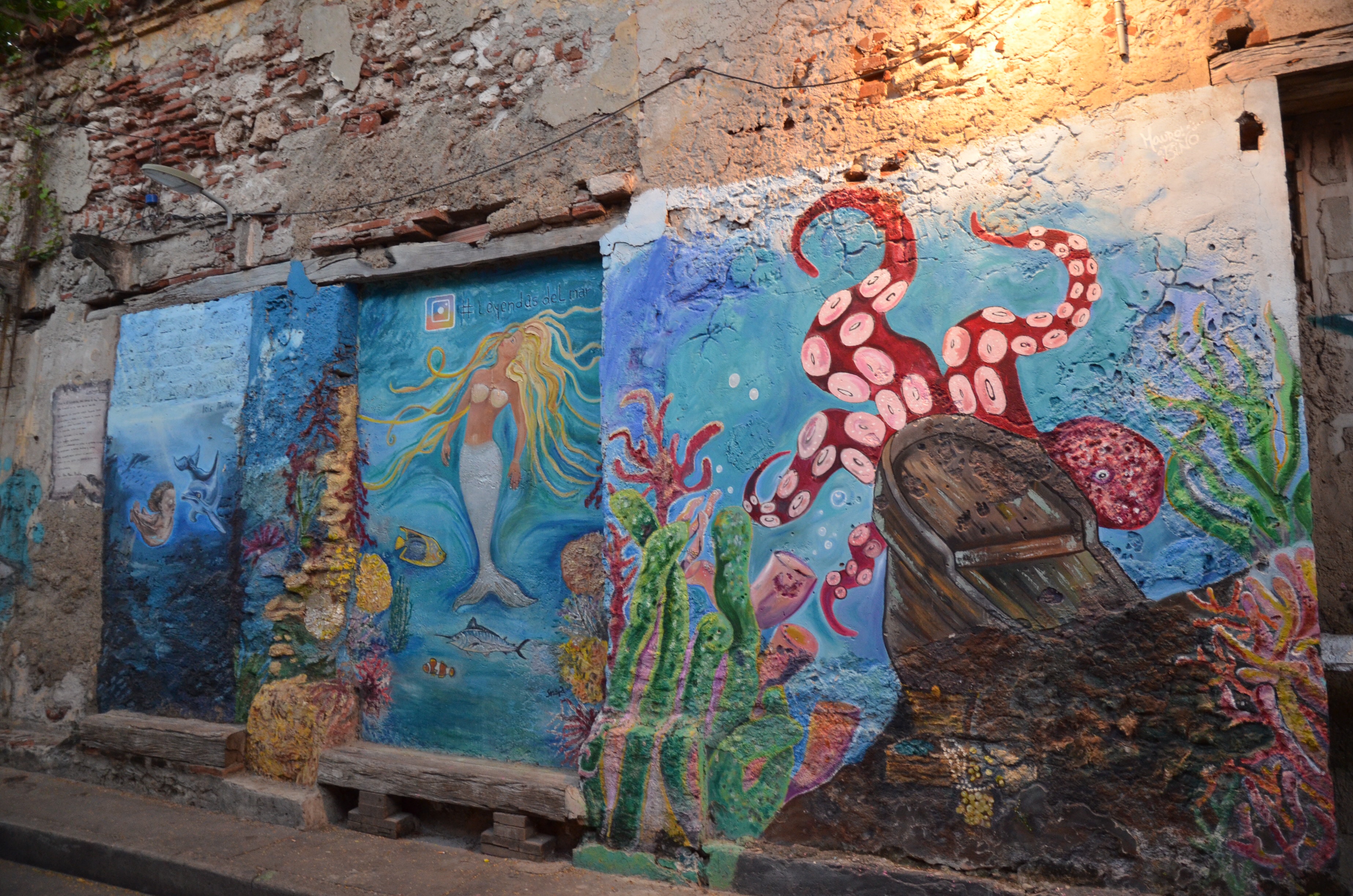 Through the main gate, past Getsemani, and over a bridge to the fort. It was only a bit over a mile but it was 85 F and very humid, so it felt further.